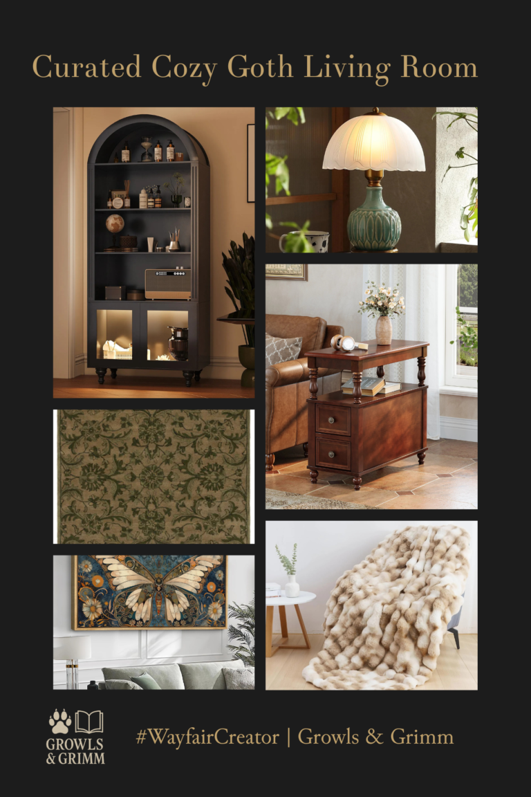 Looking to transform your living room into a cozy, moody retreat? I’ve rounded up six striking pieces from Wayfair that bring together gothic charm, comfort, and timeless style. From a plush faux fur throw to a statement arched bookshelf, each…