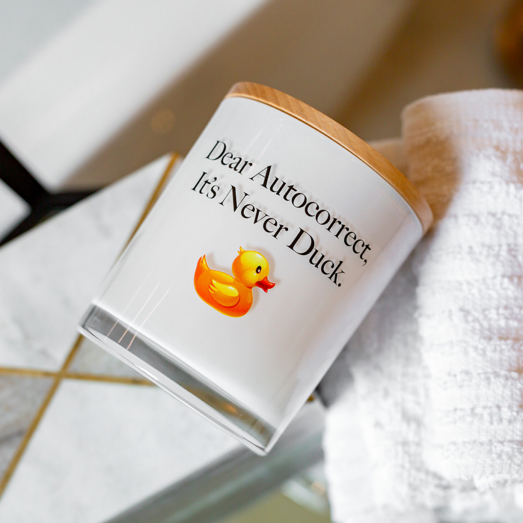 Self-care can be sacred… but sometimes it’s snarky. This candle says what we’re all thinking: “Dear AutoCorrect, it was never duck.” Perfect for burning while journaling, reading, or just glaring at your phone.
