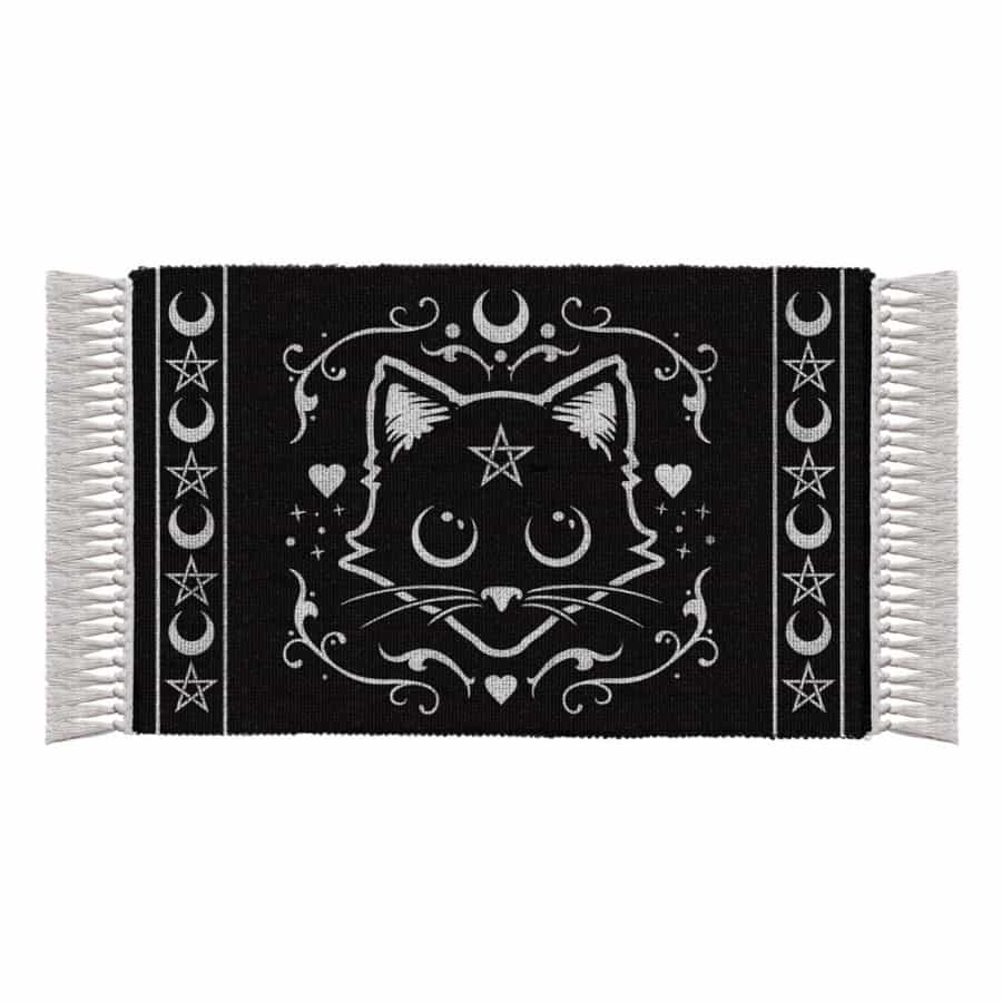 A cozy rug for witches who believe black cats are good luck. Soft, cute, and perfect for dressing up a hallway, bedroom, or your reading nook floor.